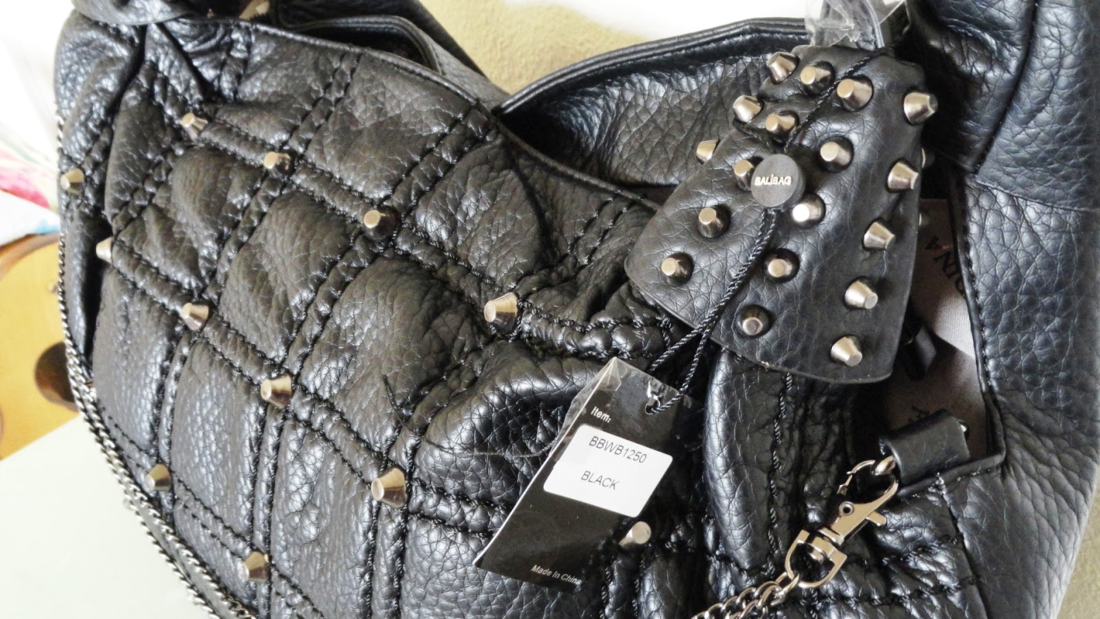 I opened my bag with this black Balibelts Studio Studded Hobo. This bag is quite large. It measures 19.5" in length x 2.5" in width x 13" in height. I didn't actually take out a tape measure until the last day of trading to see exactly how big this bag was. Which I recommend, the picture with the mannequin on the site can be deceiving...